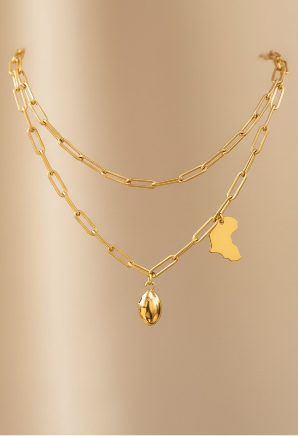 One of our favourite and best selling designs! Amani Africa Love necklace, refined in its beauty is a combination of delicately handmade chain and two subtle pendants. It will add a touch of Africa to the jewelry collection of those of you who have special feelings towards this continent... like us.